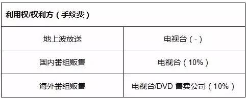 另外,在二次利用之前各公司会与第三方签订一份“利用许诺”,过程中将产生一定的利用费用,也就是手续费,最终所得收益需要扣除相应手续费,假设手续费比例如下:(其中地上波放送行为按行业惯例不被列入二次利用当中)