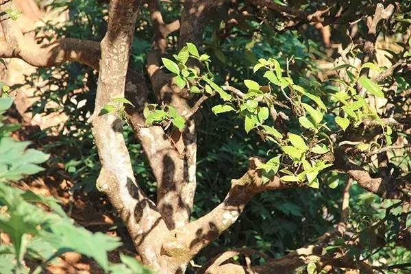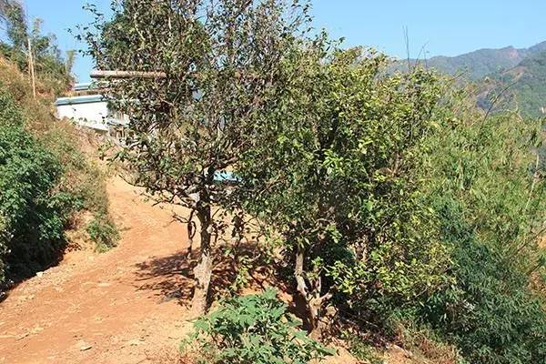冰岛地界寨同冰岛南迫寨一样,属于搬迁寨。冰岛地界寨的寨子相对较散,茶园就在村寨周边的坡地上,以生态、小树茶为主,茶种多以大、中、小三种叶型同园共生。