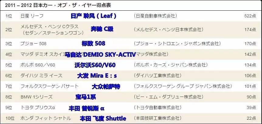 日产聆风是未来电动车(EV车型)发展趋势的代表,日本本来就注重新能源的发展及普及,这货的表现又恰到好处,自然赢得了评委们的青睐。
