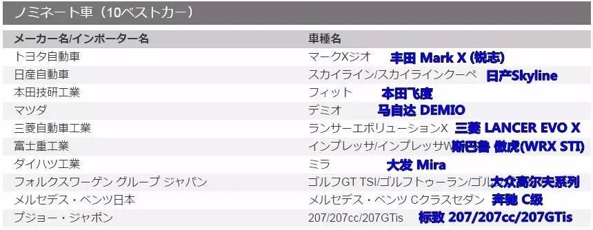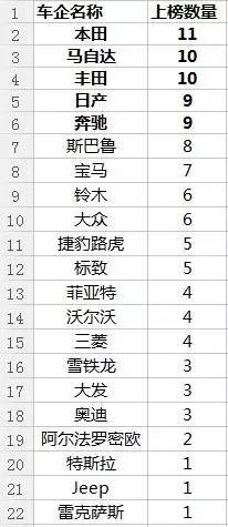 看到这会不会觉得奇怪,咦,表格咋变了?这还是改版前的老风格,表格只有入围的10款车,只是没有名次。但放心,没啥妨碍,反正跑不出这十款车。
