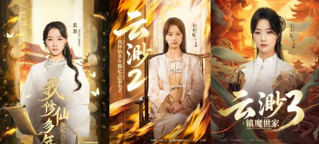 作为短剧系列化较早获得市场验证的经典案例之一,《云渺》改编自番茄小说作者白菜的作品《我,修仙大佬强亿点怎么了》,主打“大女主修仙+志怪美学”,剧中女主云渺的旗袍装扮和冷冽眼神已成为该系列的招牌。