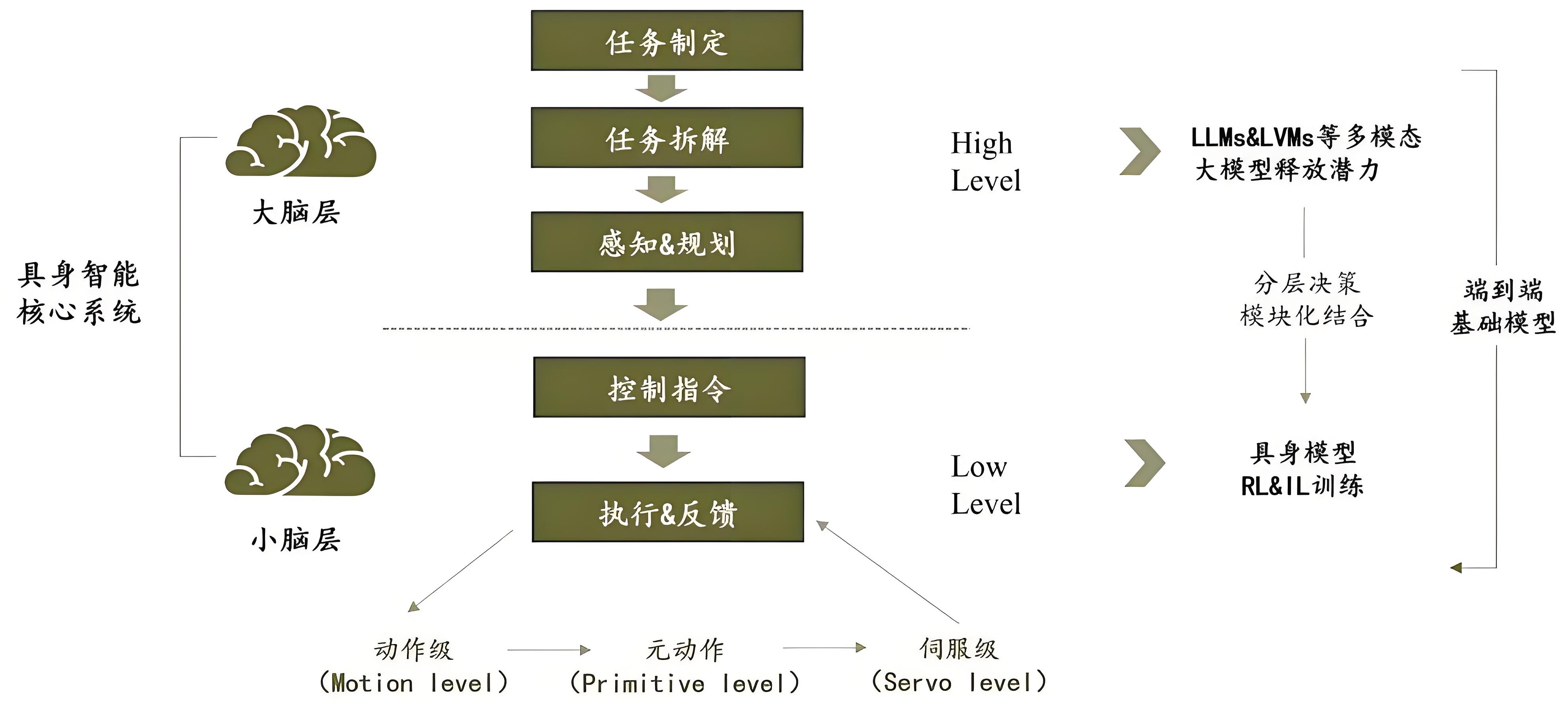 光有“感知”还不够,机器人还得学会“思考”,这就是认知层的任务。它接收来自感知层的原始数据,经过分析、决策,最终生成行动指令,相当于给机器人装上了“会推理的大脑”,它主要包括分层决策架构和世界模型构建两个关键部分。