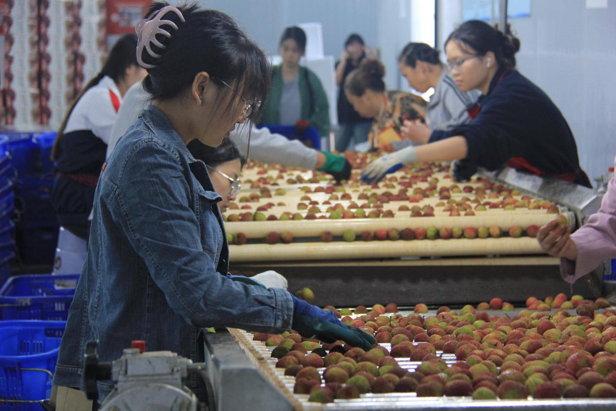 在合江中荔的一个现代化车间里,一筐筐荔枝堆满库房,果子在传送带上欢快地跳跃,宛如一条热情奔放的“红色小河”……一颗颗荔枝经过筛果、分拣、清洗、打包、称重等环节,便立即发往全国各地的商超。