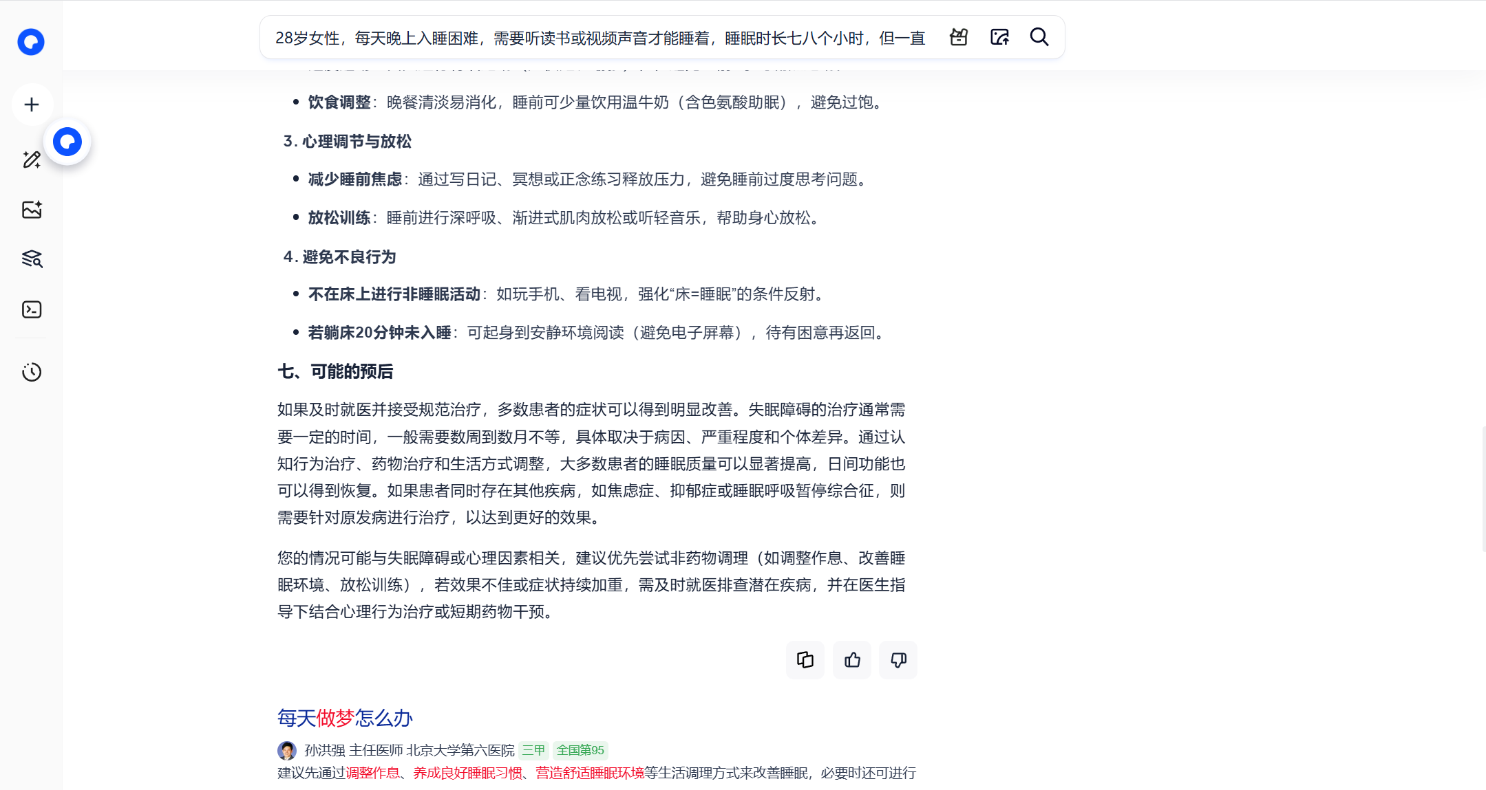 但坦白说,尽管这些信息完整、专业,但偏向于普适性常识,如睡前避免使用手机、保持黑暗环境等,对症但不够个性化。