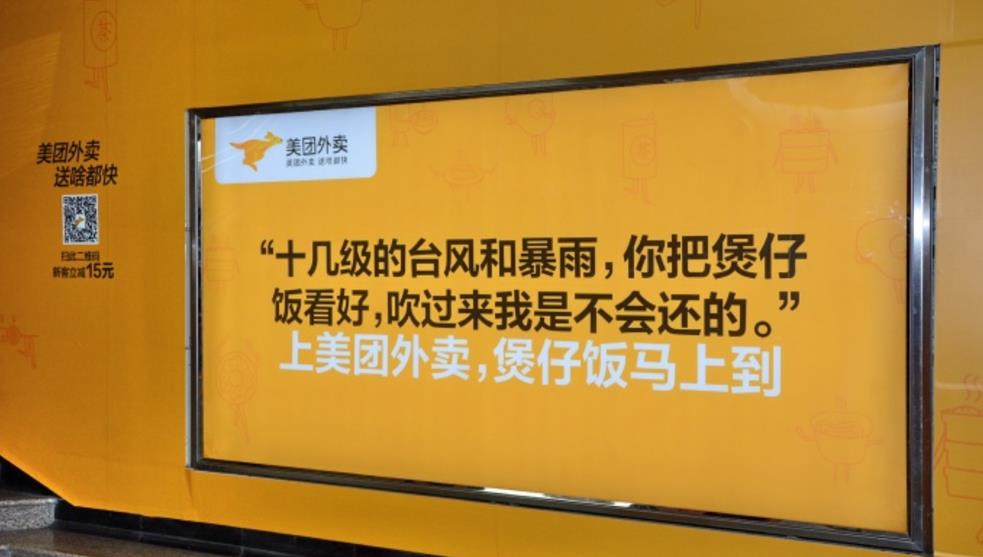 是不是觉得风格都谜之相似?最近这种“大字报广告”似乎成为了不少品牌的心头好。最近,美团也紧跟潮流,推出了一波“与天怼其乐无穷”为主题的户外广告。