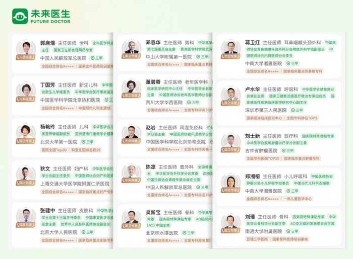 在“未来医生”,聚集了来自全国 A++++ 级别医院的专家团队,包括曾担任国家级学术委员会主委、副主委的行业权威专家及医疗团队。这些长期集中在少数城市和机构的核心专家资源,以往常因“一号难求”或“就医成本过高”让普通百姓望而却步。但“未来医生”以MedGPT医疗模型作为驱动,突破性地结合人机协作模式,不仅覆盖了95%的常见疾病和大多数疑难杂症,更重塑了诊疗成本与质量的平衡,而“永久免费在线问诊”的服务模式,真正让行业权威专家及团队变得人人可及。