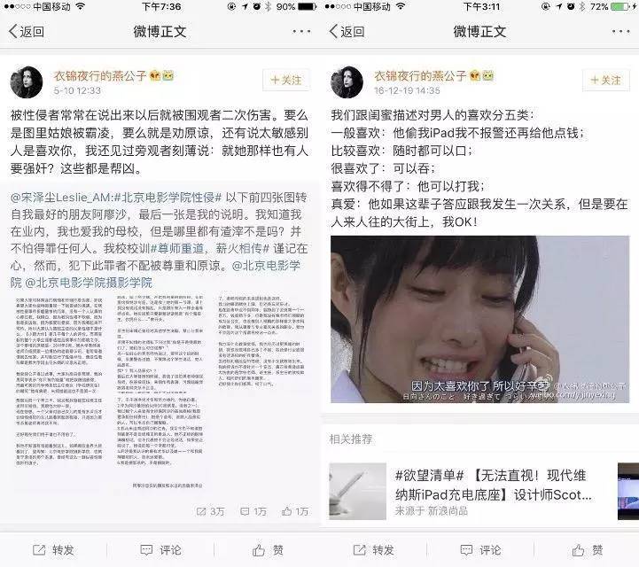 新闻的核心是微博著名“女权博主”衣锦夜行的燕公子,另一个对象是当红男明星黄轩。