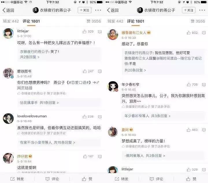 这事一出,我原以为会引来一众嘲讽,但万万没想到,燕公子的微博底下一片欢天喜地,恭喜她睡到了黄轩。