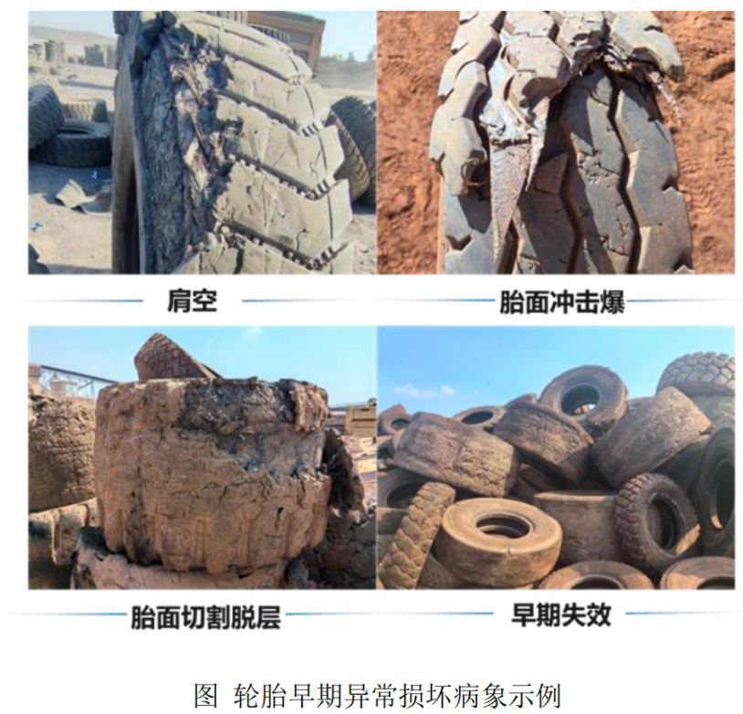 矿山建筑轮胎领域使用场景复杂多样、恶劣苛刻,轮胎普遍异常损坏,容易出现肩空、胎面冲击爆、胎面切割脱层等问题。