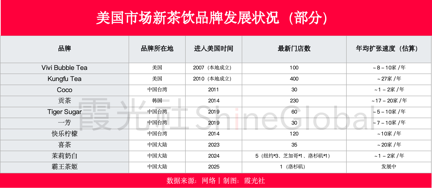 一年多的时间开出30余家店听起来并不多,毕竟很多品牌在国内一个月就能开出100家。但需要指出的是,新茶饮品牌在美国市场的落地难度远大于国内和东南亚。