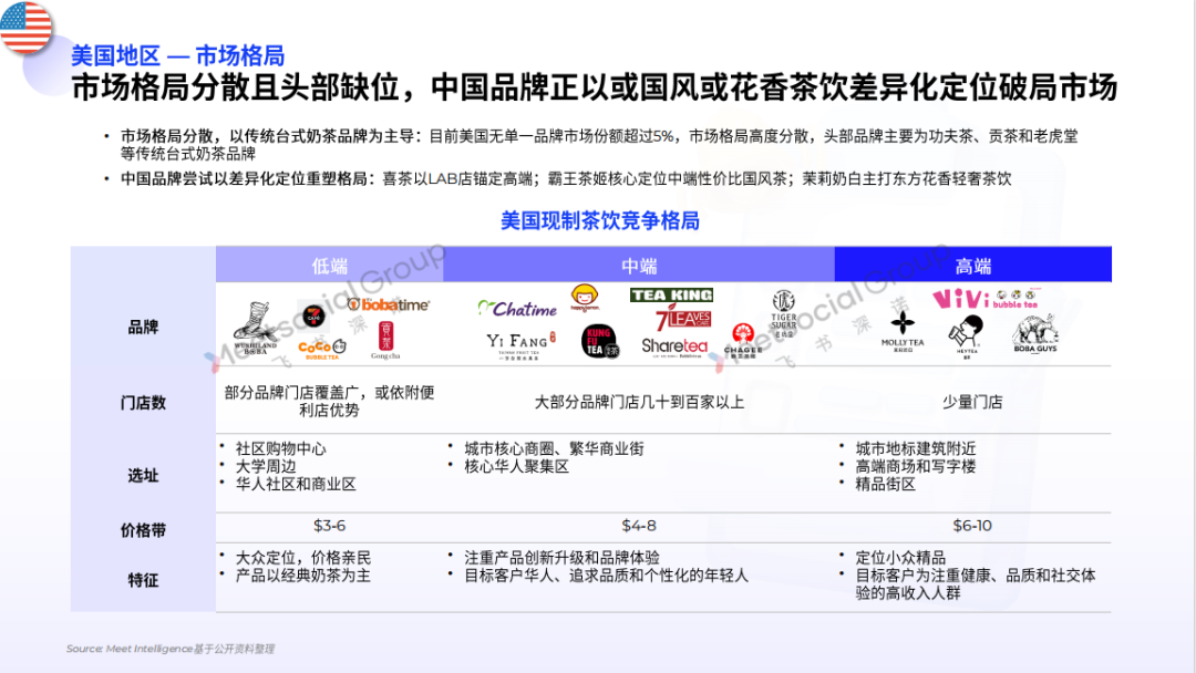 即便是走性价比路线的贡茶、Coco,价格带也集中在3-6美元之间,价格远高于国内。