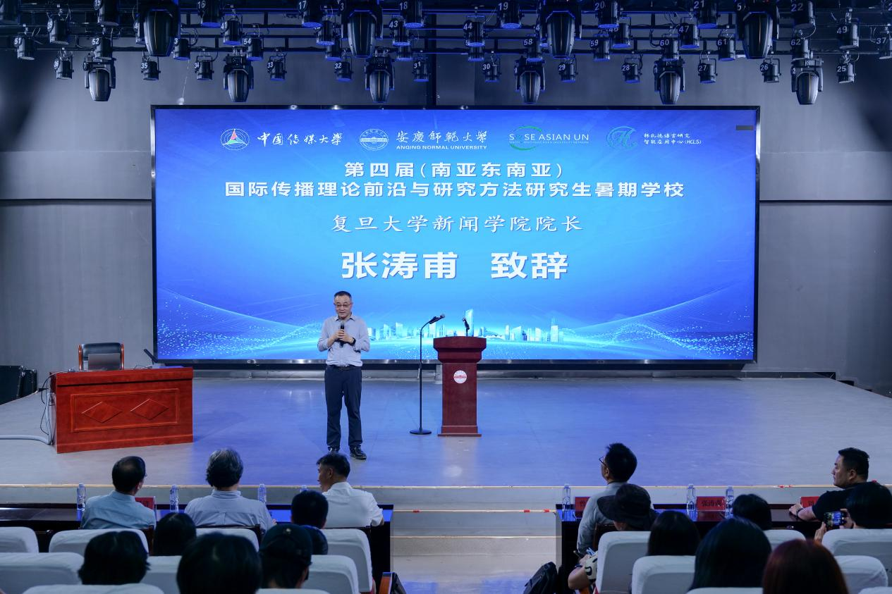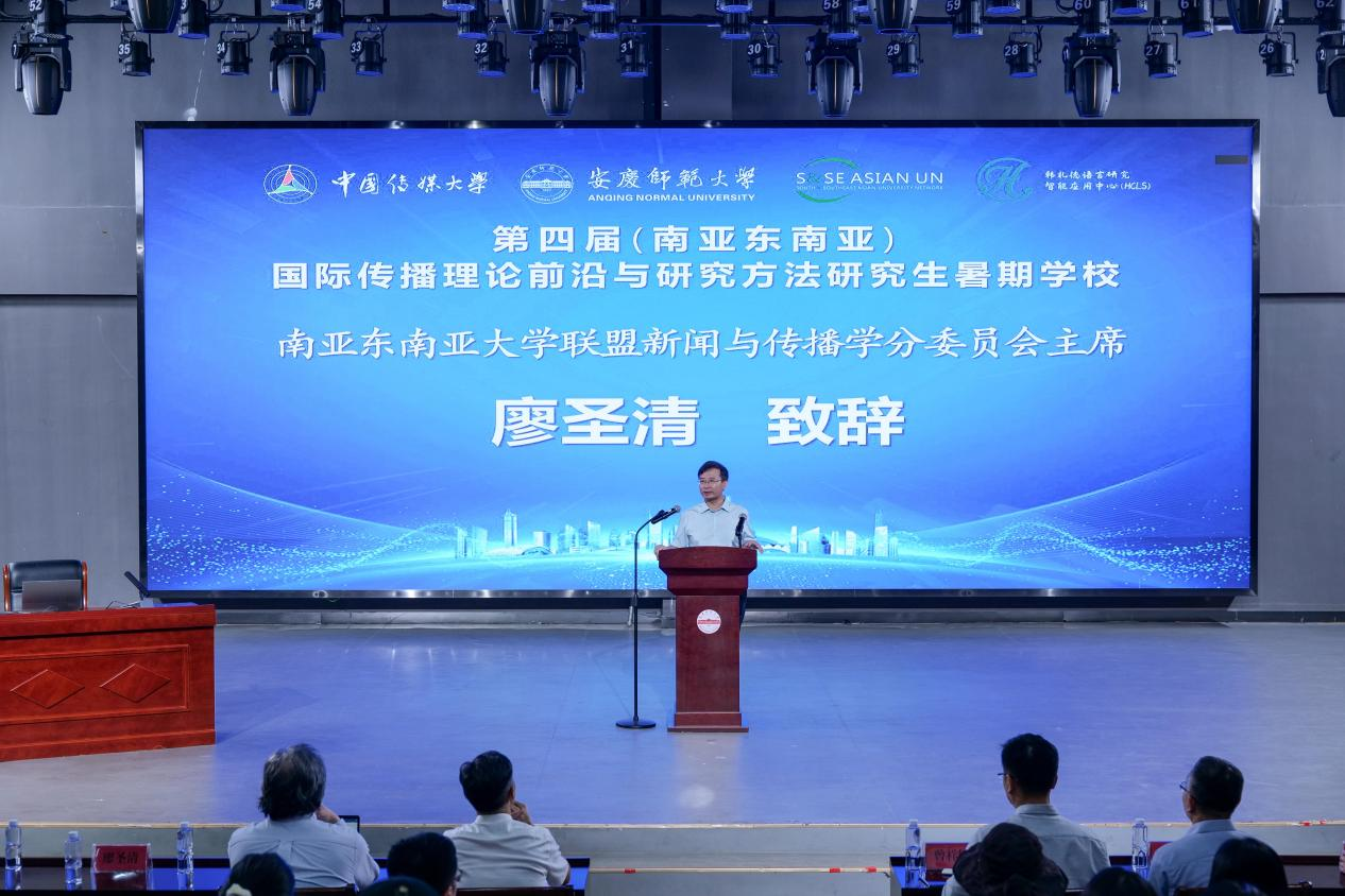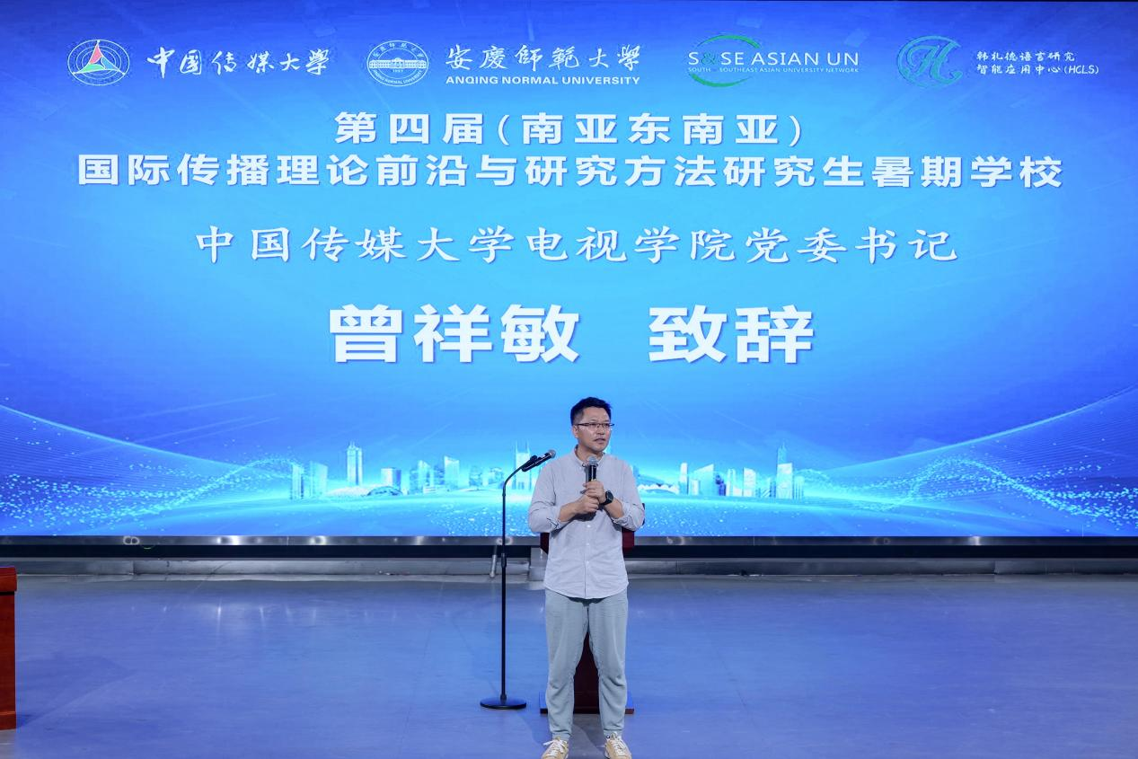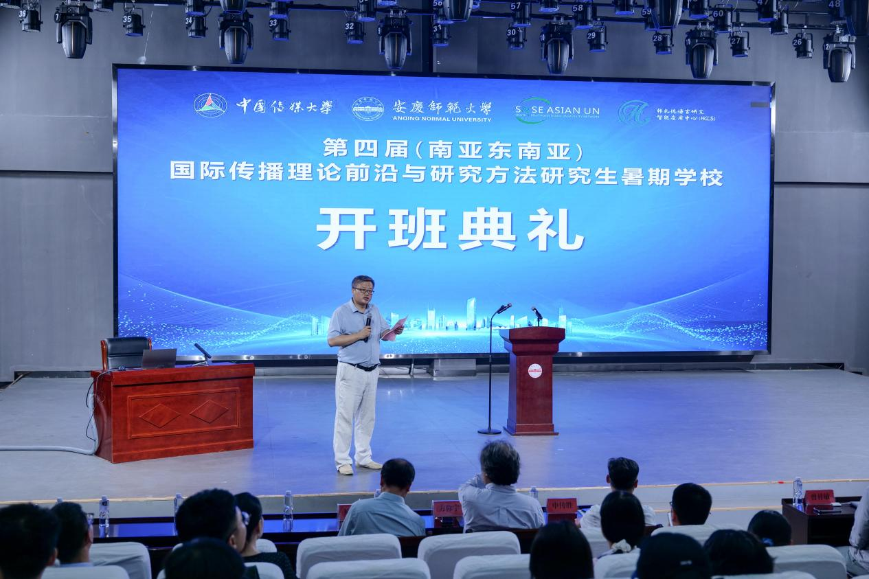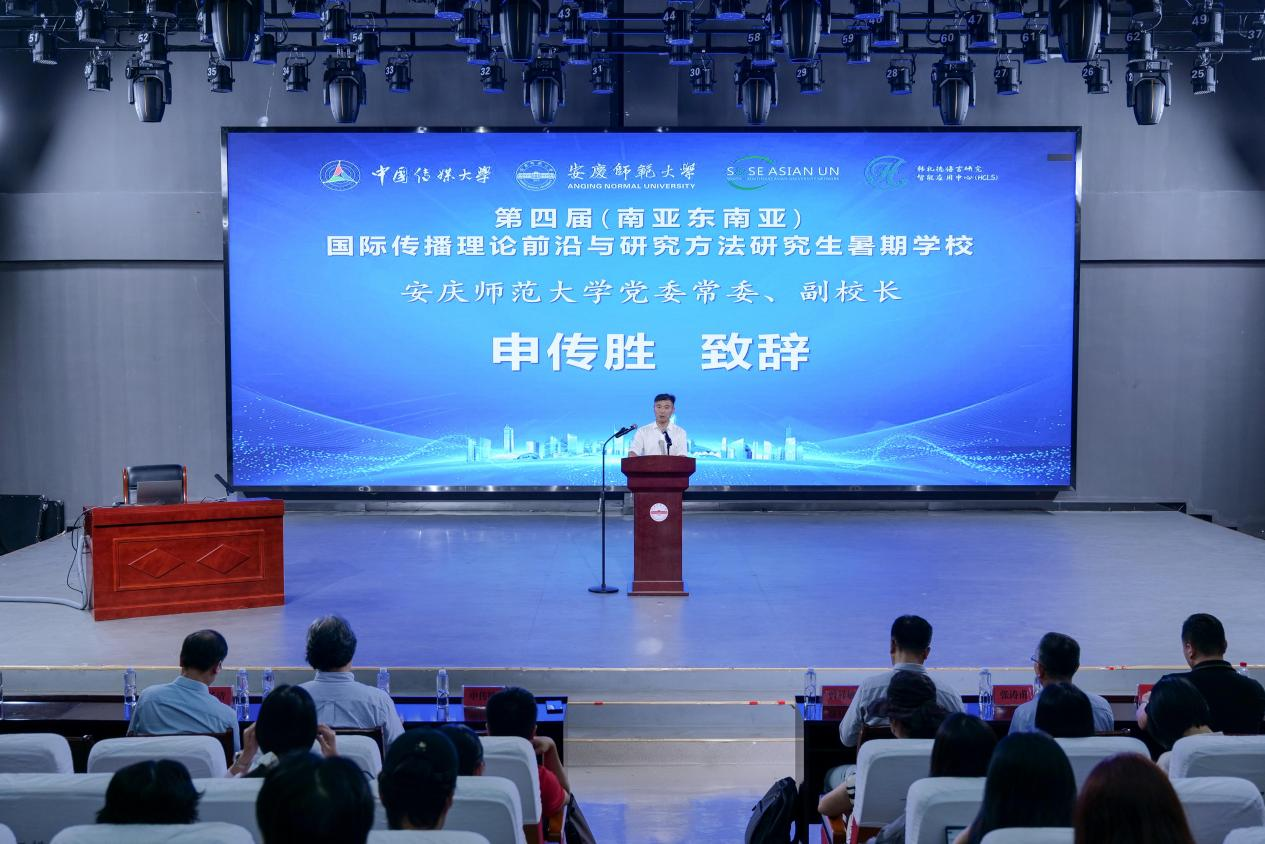 8月4日上午,第四届(南亚东南亚)国际传播理论前沿与研究方法研究生暑期学校开学典礼在安庆师范大学传媒学院报告厅举行。此次暑期学校由中国传媒大学新闻传播学部、安庆师范大学传媒学院、南亚东南亚大学联盟新闻与传播学分委员会、香港城市大学韩礼德语言研究智能应用中心联合主办。旨在应对世界变局、加快构建具有鲜明中国特色的战略传播体系,着力提高国际传播影响力,全面提升国际传播研究的深度广度精度。