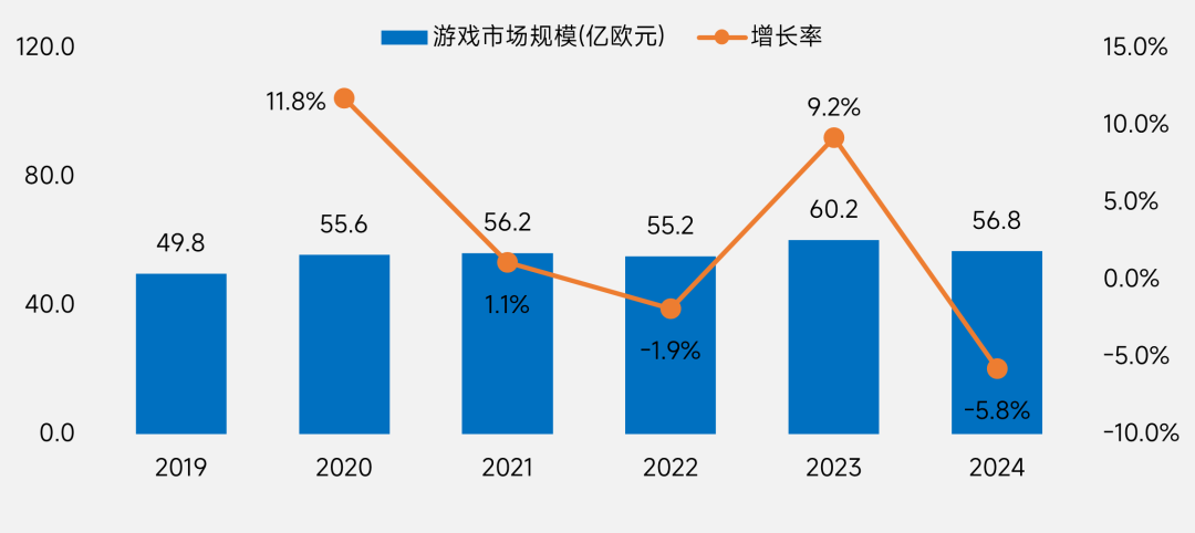 2024年,法国游戏产业规模为57亿欧元,是欧洲第三大游戏市场
