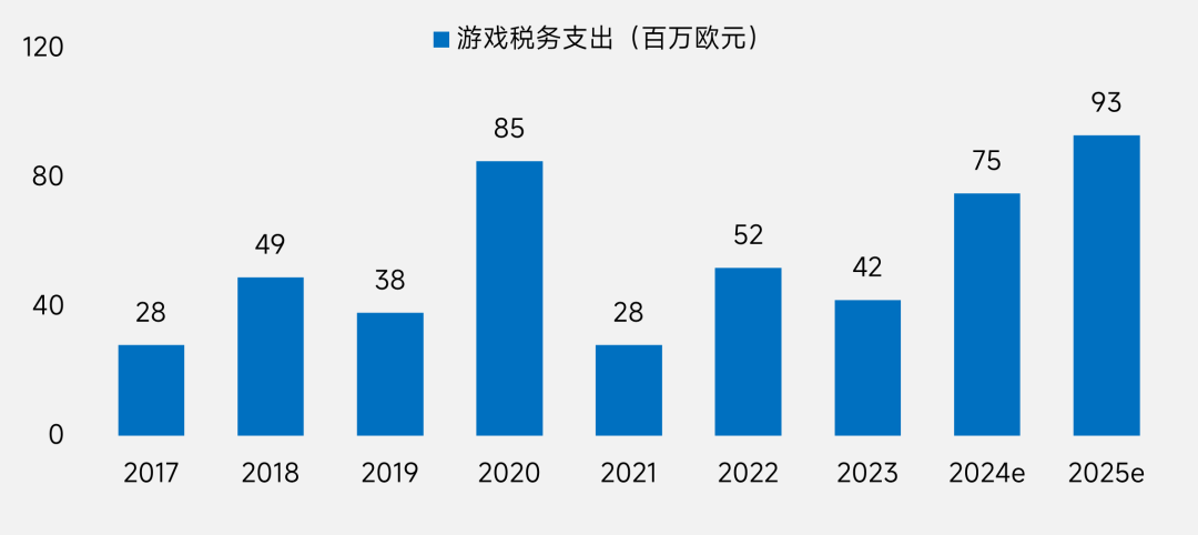 从2008年开始,法国财政部每年都会为“具有欧洲文化(尤其是法国文化)”、且符合条件的游戏公司提供税收减免,2018年起抵扣税率升到30%,2017-2023年期间,法国政府为游戏企业减税3.22亿欧元,预计2024-2025年税务支出将再创新高。
