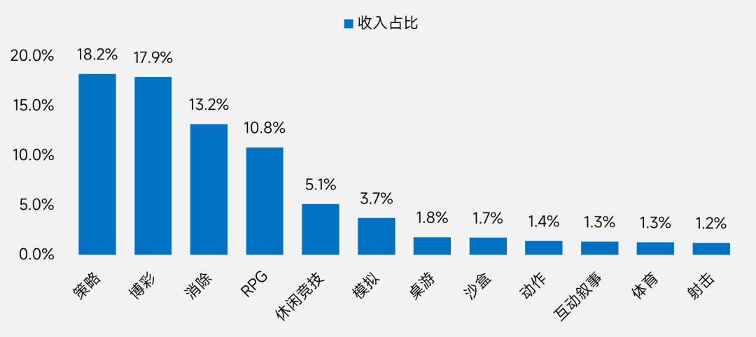 策略、博彩、消除三大品类是移动游戏市场收入主力,RPG类占据第4位