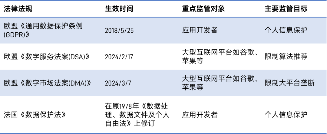法国的数字相关产业合规政策整体与欧盟是保持一致的,核心政策是欧盟颁布的《通用数据保护条例(GDPR)》和法国颁布的《数据保护法》, 具体到游戏行业,主要围绕游戏分级、游戏充值、未成人保护等重点内容展开监管。