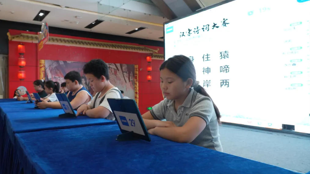比赛现场氛围紧张热烈,选手们个个全神贯注,沉浸在诗词的世界中。面对屏幕上的题目,他们认真思考,手指在屏幕上飞快点击,从容作答,充分展现出扎实的诗词功底和对传统文化的由衷热爱。从唐诗宋词到经典名句,选手们在答题过程中尽情感受中华诗词的韵律之美与意境之妙。