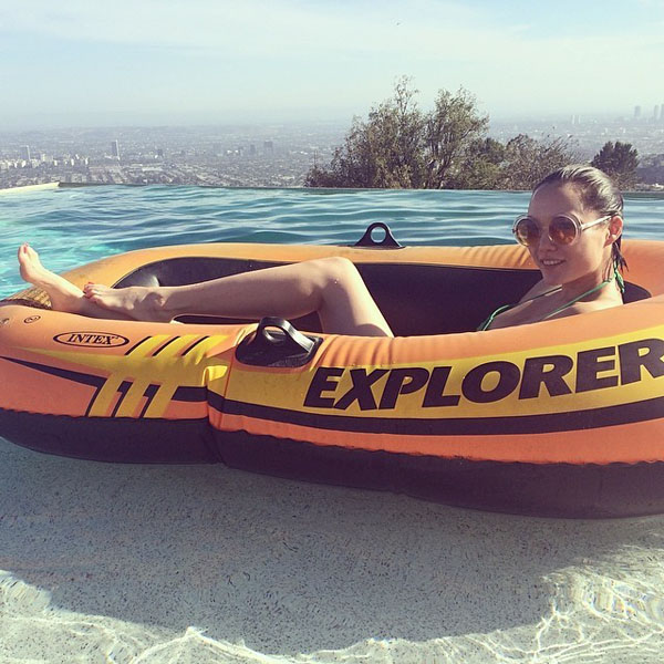 最近的照片里,有这张居家素颜赤脚插花照,之前汪峰在微博晒过的。▼