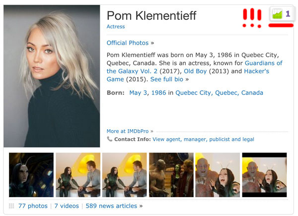 搜了我才发现,她现在在IMDB上,成了最受关注的明星第一位,看来不止我一个人对她感兴趣。▼