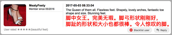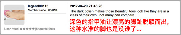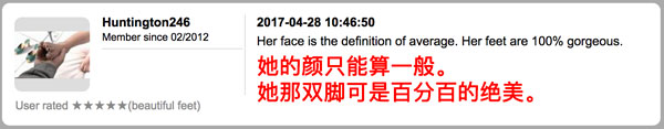 她们的脚,都被评为“gorgeous feet”,极美的脚。