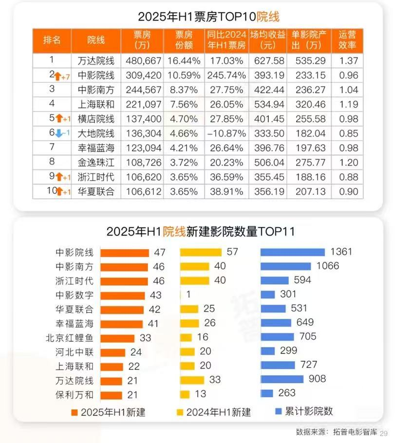 从目前的财报披露情况看,光线传媒作为上半年的赢家是毋庸置疑的,其第一季度的净利润就超过了20亿;第二位是万达电影,其院线票房份额为16.44%,为上半年全国院线票房里的第一名。万达电影在公告中表示上半年的净利润在5亿元-5.67亿元之间,对比2024年同期1.13亿元的盈利上涨了超300%;