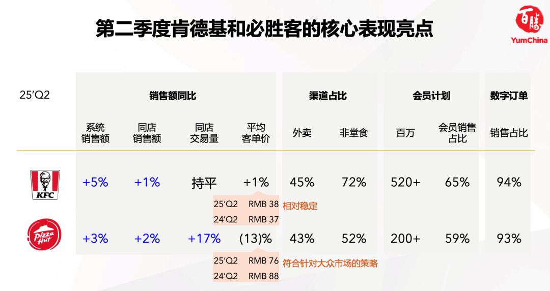 其中,肯德基净新增门店295家,其中加盟店净新增119家,占比40%,截至2025年6月30日,门店总数达12238家;必胜客净新增门店95家,其中加盟店净新增21家,占比22%,截至2025年6月30日,门店总数达3864家。