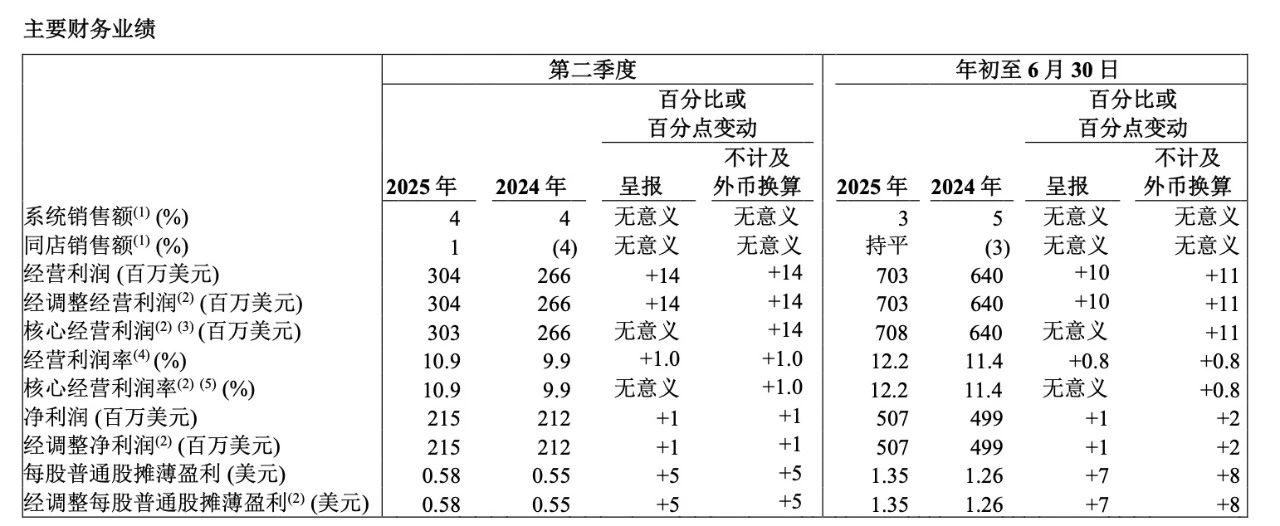 整个上半年,百胜中国总收入57.68亿美元,同比增长2%;经营利润同比增长10%至7.03亿美元。