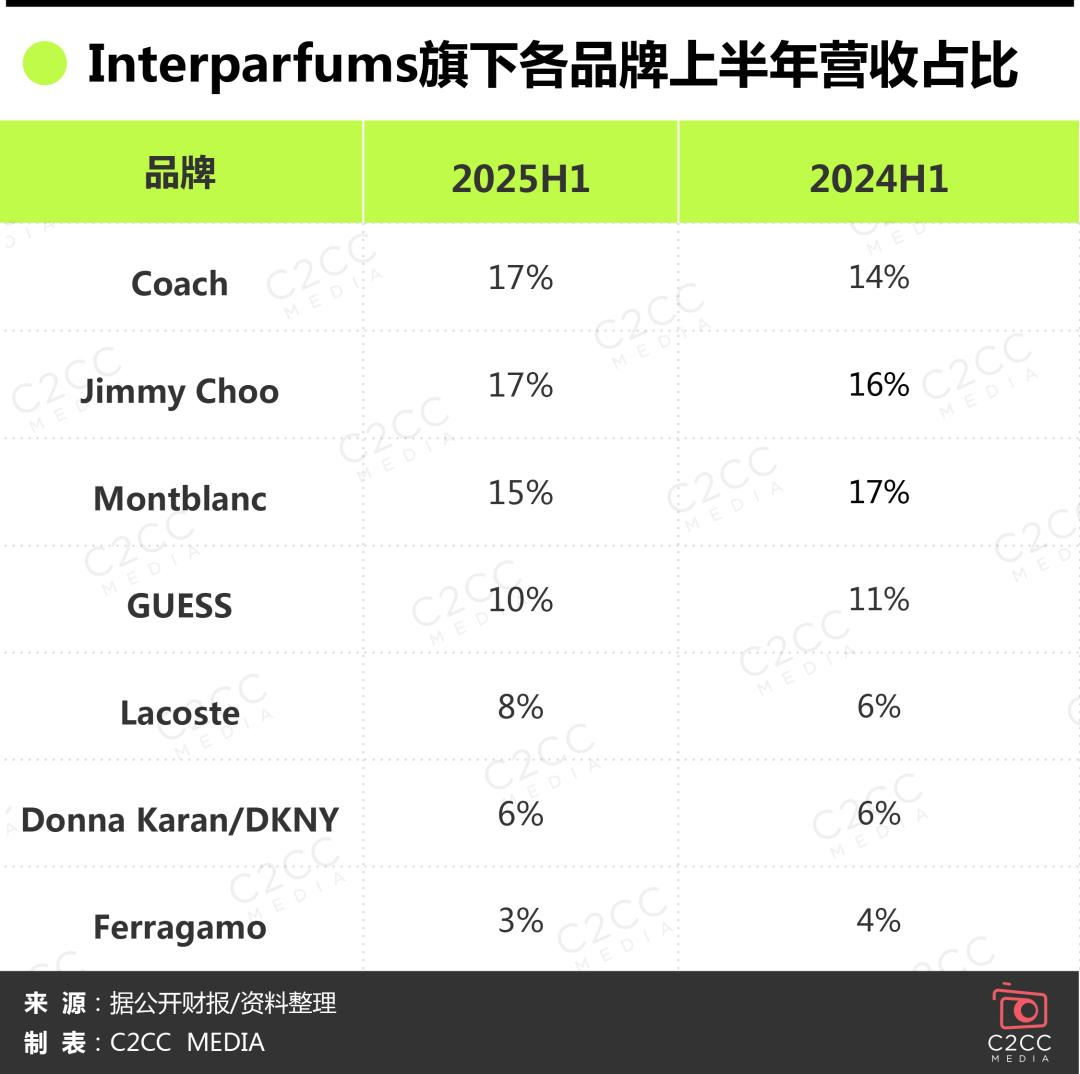 虽然上半年整体业绩表现欠佳,但Interparfums旗下依然不乏有表现强劲的香氛品牌。尤其是Jimmy Choo和Coach两大主力品牌,其销售额均占据了集团17%的份额,相比2024年占比进一步扩大。