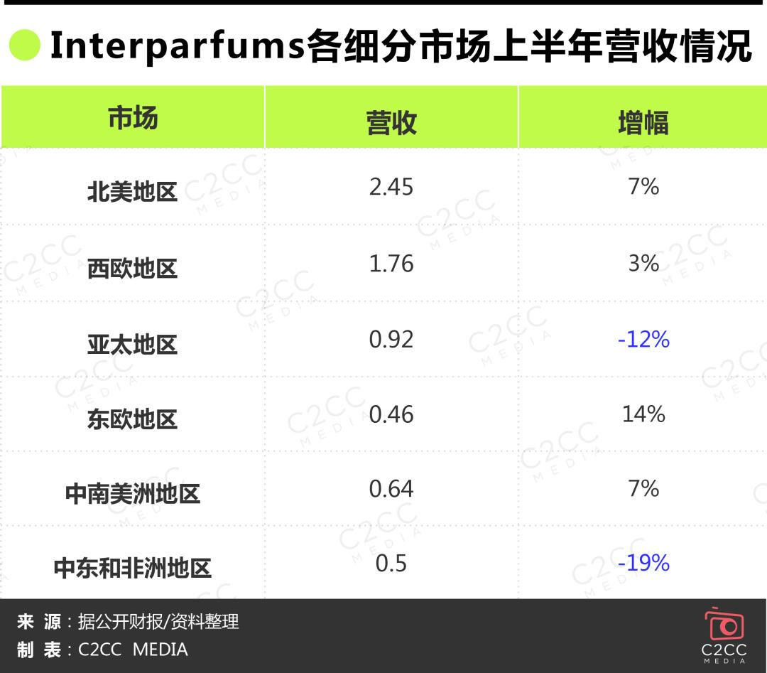 从细分市场的表现来看,北美地区是Interparfums的第一大市场,该地区上半年销售额同比增长7%至2.45亿美元。