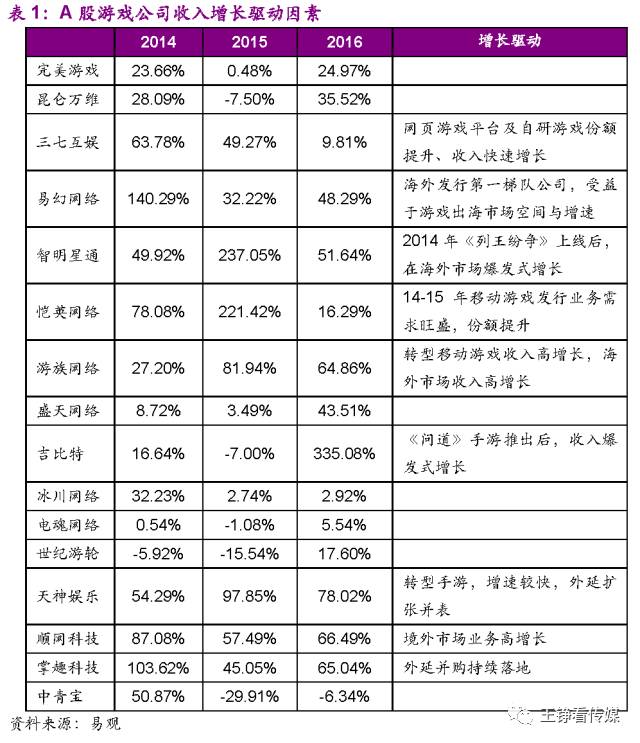 2. 2014-2016年,A股高增长游戏公司受益于转型移动游戏、海外业务拓展取得较大突破,以及外延并购。