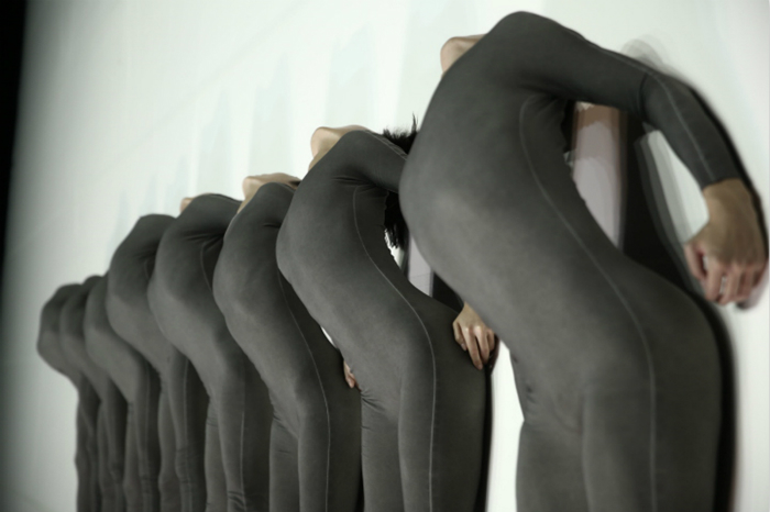 《6》将脊椎作为人原动力“动”的回归,通过旋钮、折叠脊柱来拓展空间的多元层次,更通过脊柱的运动传递每个由内至外延伸的过程末梢,在删减掉手舞足蹈的常规肢体语言后凝练出躯干运动,以此作为舞蹈的全部意义。