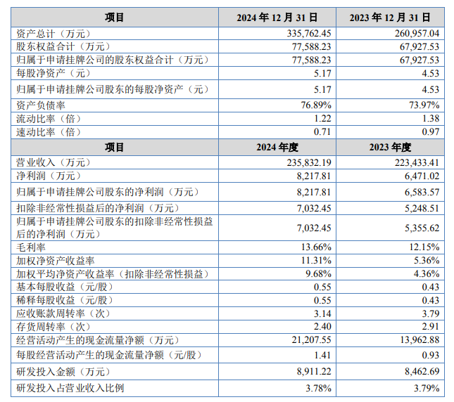 而日渐增长的应收账款余额——2023年6.14亿元,2024年7.36亿元,也伴随着发生坏账的风险。“较大金额的应收账款将影响公司的资金周转速度,给公司的营运资金带来一定压力。”公开转让说明书中如是提示。