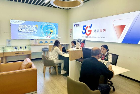 在天府国际机场T1航站楼国际到达口,中国电信设立的“智惠世运 电信同行”全国首个机场全业务电信营业厅,成为外籍人士入境后的首个服务节点。