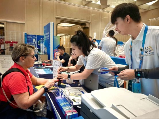 赛事期间,中国电信在世运村设立双语服务专区,配备专业团队提供从早8点至晚10点的现场支持。服务内容涵盖为运动员量身定制通信套餐,并提供多语言产品介绍,精细化服务覆盖了生活与备赛的每个环节。