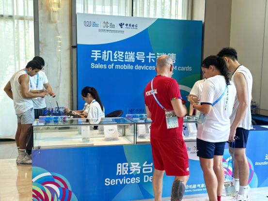 该营业厅实行7×24小时运营机制,外籍人士凭护照即可快速办理本地手机卡开通业务,并一站式获取手机终端、网络服务支持,让外籍用户彻底告别初到异国的“通信焦虑”,成为世运服务的前沿窗口。