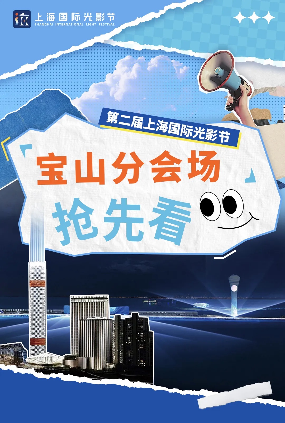 宝山区以长江滨江贯通带作为第二届上海国际光影节宝山分会场,举办以“潮涌吴淞口·璀璨滨江带”为主题的光影文化系列活动。