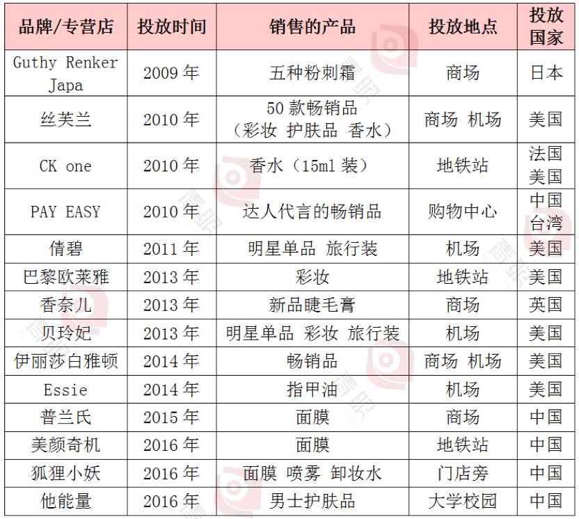 显然,化妆品自动售货机,在不同的投放地点对应着不同的初衷,但大体来看,不论是品牌传播还是产品销售,最终都是用产品说话。