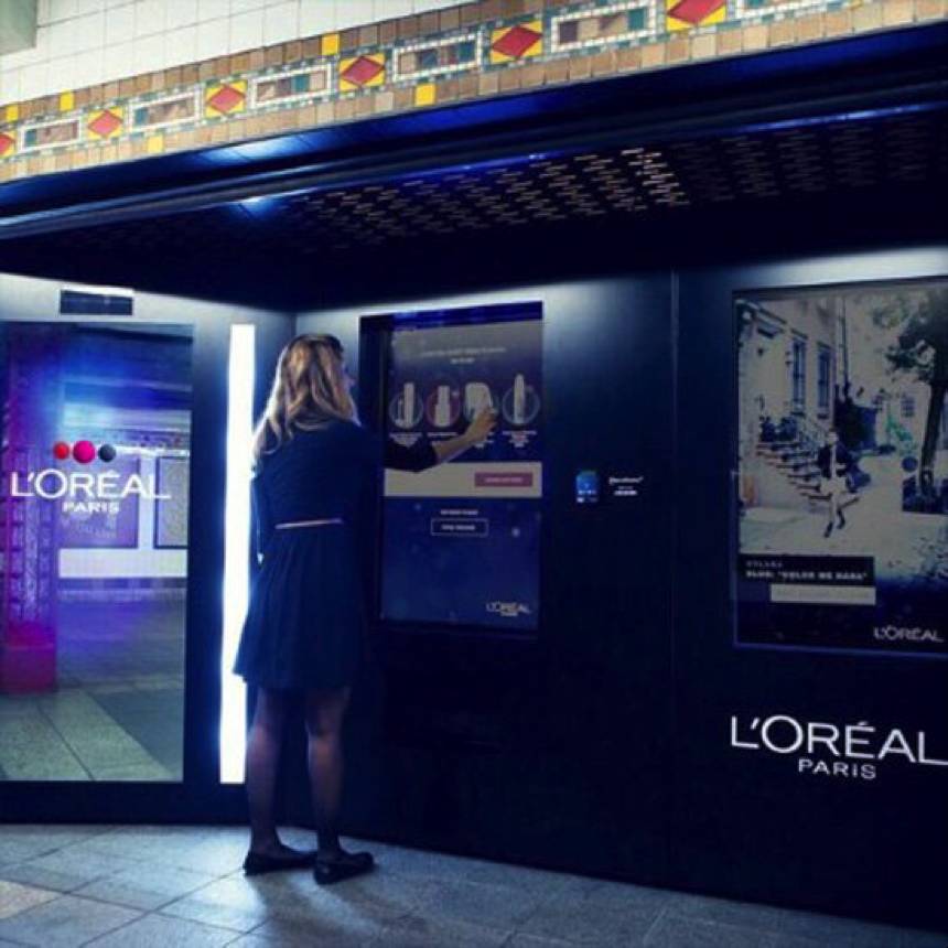 “老司机”巴黎欧莱雅就玩得一手好牌,其在纽约地铁站推出的化妆品智能售货机,宣称打造“创新性品牌自动零售体验”,当消费者靠近巴黎欧莱雅智能自动售货机时,数字动画会根据她的影子呈现出她的轮廓和所穿衣服的颜色,并据此推荐匹配她衣服颜色的眼妆、唇彩、口红、指甲油等。消费者还可以体验各种来自巴黎欧莱雅美颜专营机构的个性化装扮。据称,从镜子扫描到购买产品,整个过程花费的时间不到两分钟。