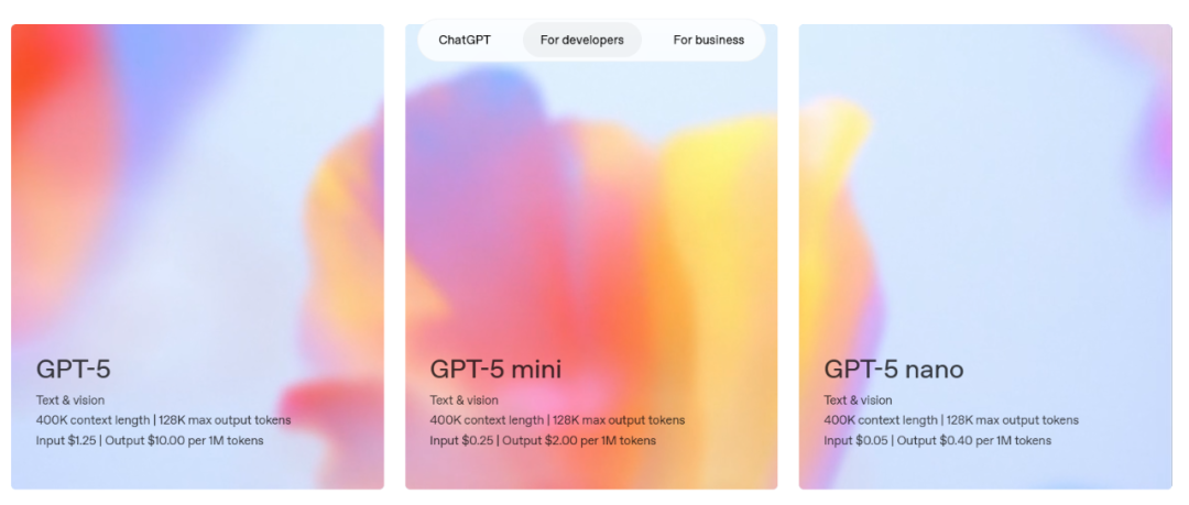 GPT-5包含GPT-5、GPT-5 mini、GPT-5 nano三个模型,API调用价格分层设置,最低的是GPT-5 nano,每百万输入token为0.05美元、输出为0.40美元,比GPT-4最便宜的模型还要低。相比老对手也有很大优势,GPT-5的调用费仅为Claude Opus 4的十二分之一。