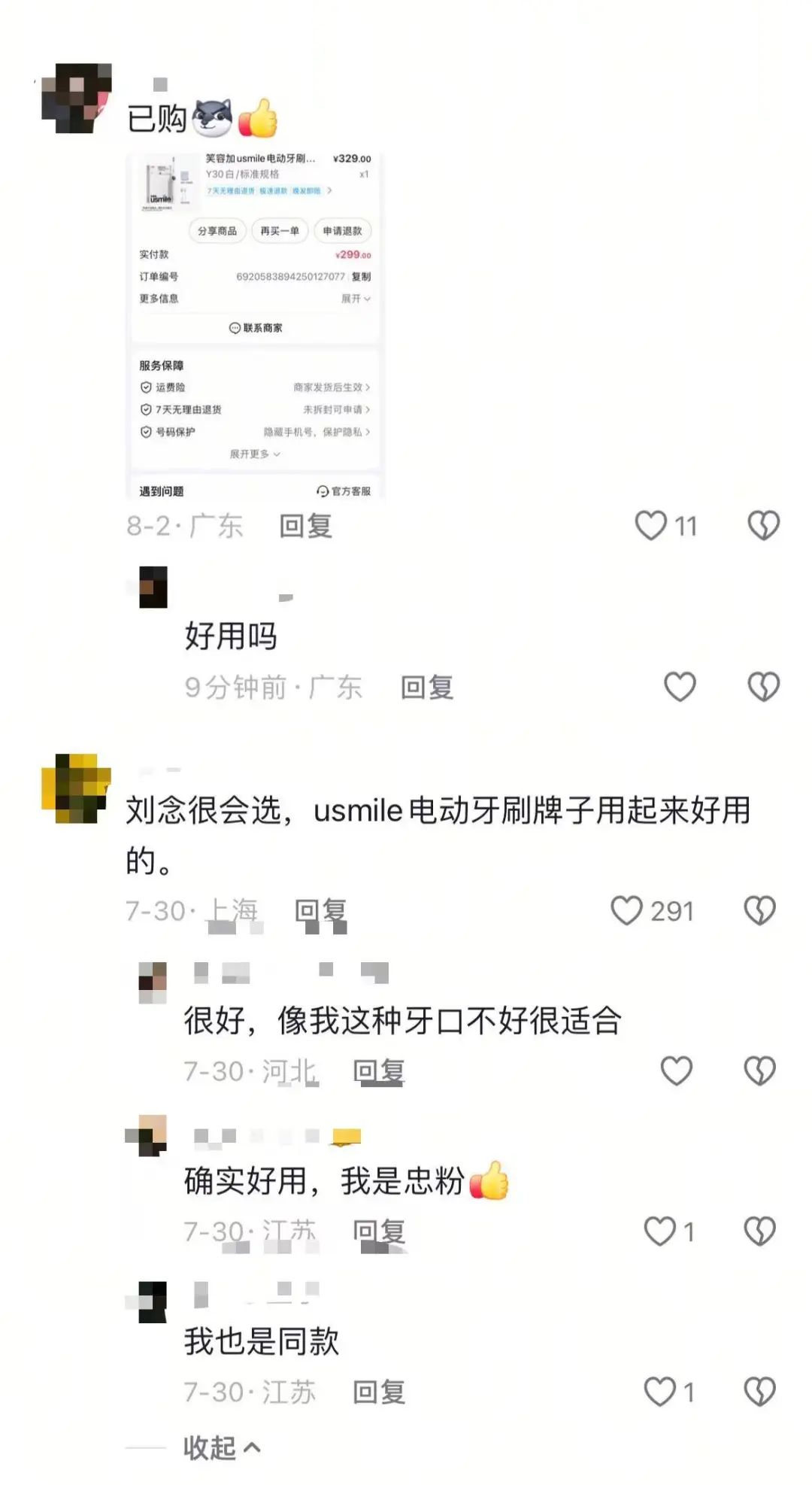 部分CP粉也自带购买力,愿意消费支持演员,西欧昨天就因为刘念推广了USMILE的电动牙刷而下单支持。
