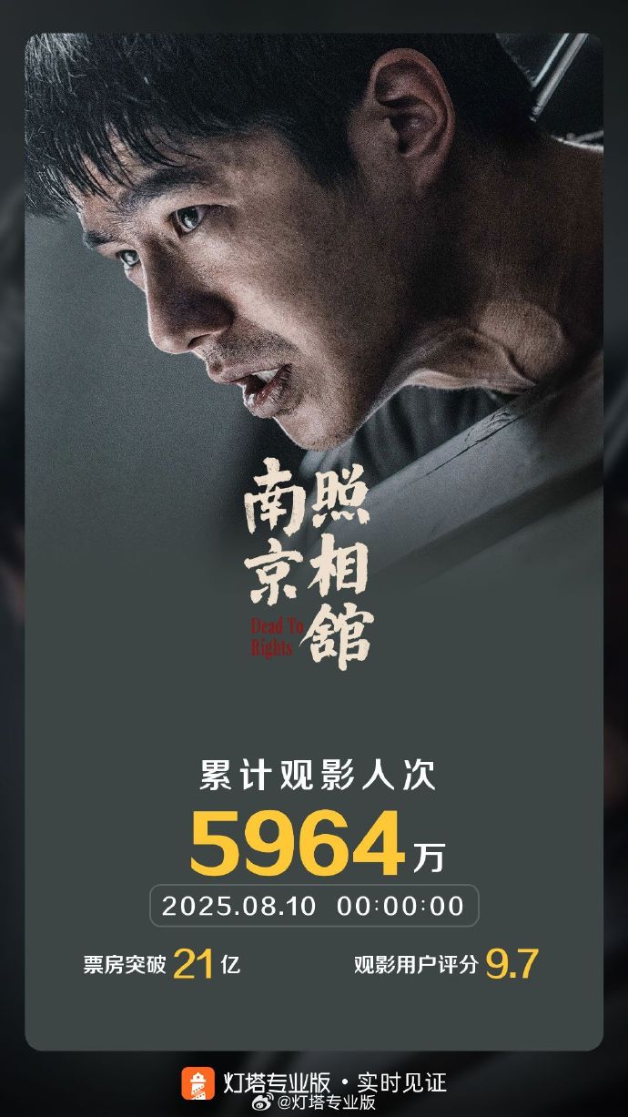据灯塔专业版实时数据,截至8月10日0时0分,影片《南京照相馆》票房突破21亿元。