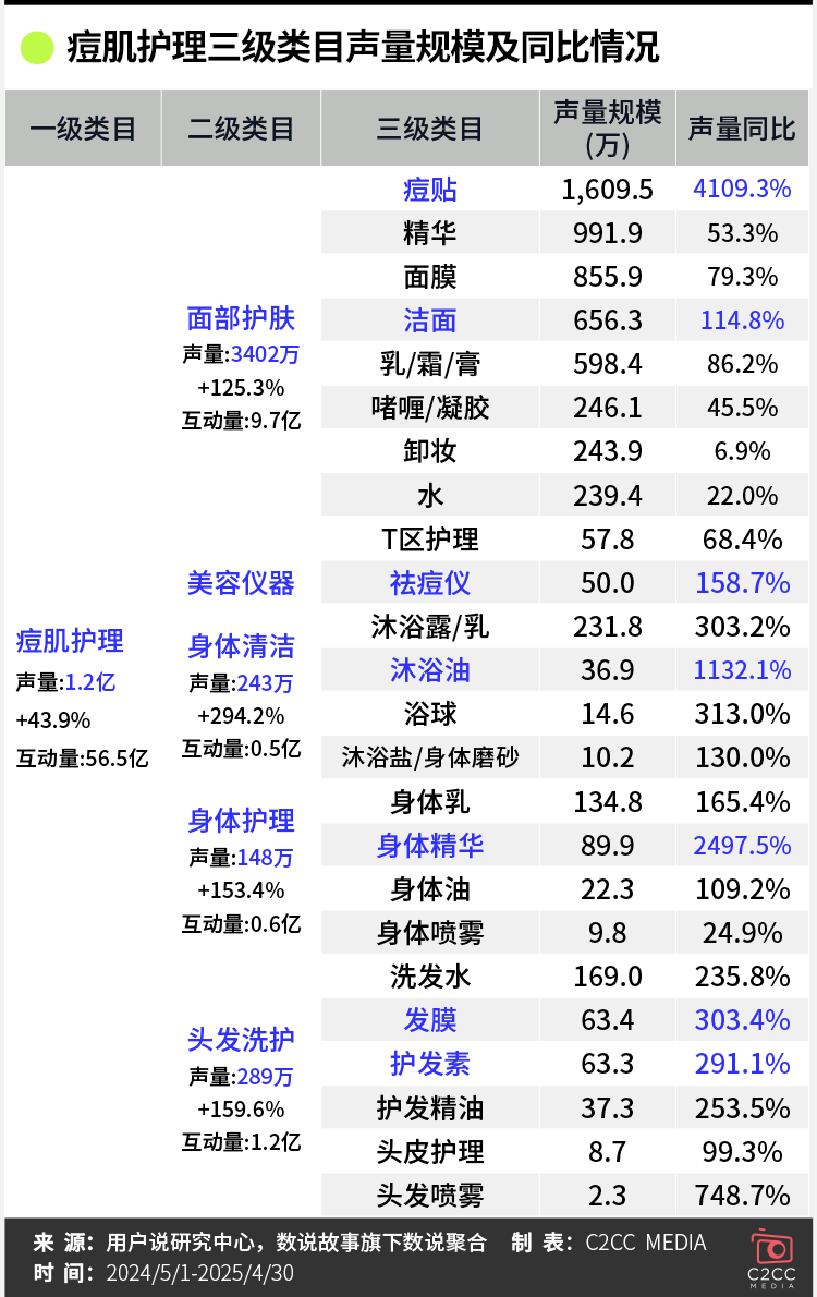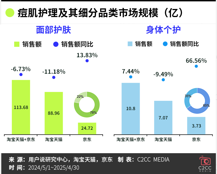 线上痘肌护理市场超百亿,身体个护等细分需求爆增