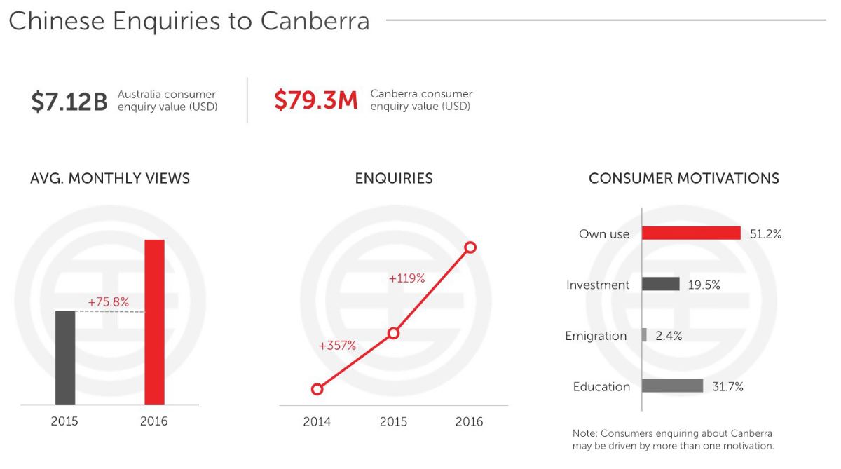 具体来看,中国买家对堪培拉的房产问询量在去年翻了一番。虽然问询总价只有7.93亿美元,但关注度涨幅超过了其它地区。强劲的自住需求是上涨的主要原因,51.2%买家关注动机是“自己使用”,而有投资动机的买家仅占19.5%。堪培拉地理位置在悉尼和墨尔本的中线上,后二者的房价攀升也让有刚需的华人盯上价格更便宜的堪培拉。