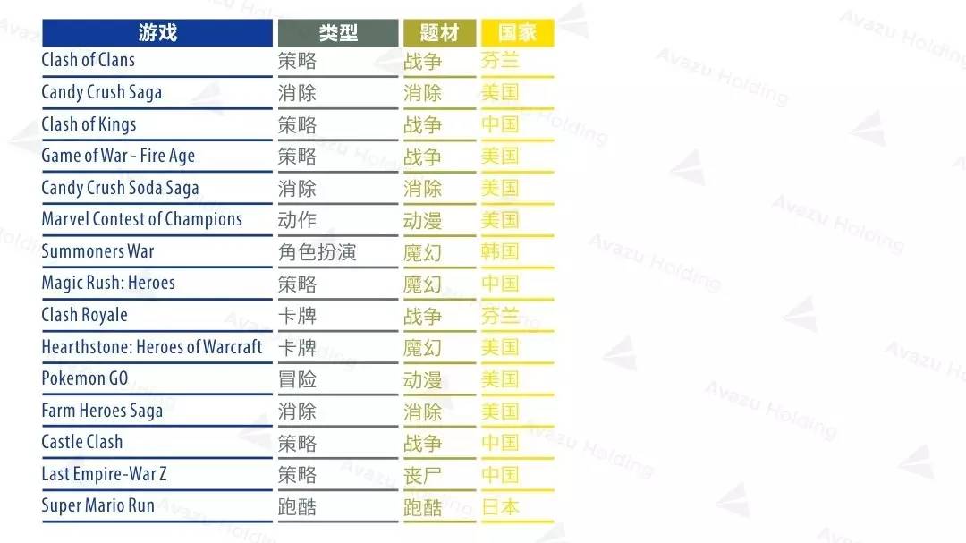 游戏也主要来自于美国和中国。