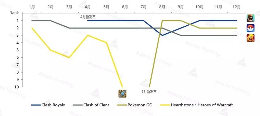 2016年进入iOS& Google Play 月畅销榜TOP10游戏