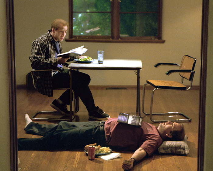 孪生兄弟查理·考夫曼和唐纳德都是大腹便便、一头卷发的形象。观众若是希望通过借助两人外貌上的区别来理解这个情节曲折的后现代故事,那他们就失算了。电影《改编剧本》由斯派克·琼斯(Spike Jonze)执导,取材自剧作家查理·考夫曼的真实经历——他绞尽脑汁都无法完成女作家苏珊·奥尔琳(Susan Orlean)的畅销书《兰花窃贼》的改编,无奈之下只好向双胞胎弟弟求助。得益于凯奇的精湛演技,这对双胞胎即使外貌一模一样,观众也能将他们分清楚。凯奇通过生动的肢体语言,把愤世嫉俗、杞人忧天的查理,和天不怕地不怕的唐纳德演绎得入木三分。