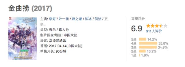 从第一期薛之谦重新演绎的《王子公主》,到最新一期金志文全新诠释的《不爱了也是一种爱》,目前,《金曲捞》豆瓣得分6.9,可以说是今年音乐综艺中的最高分。