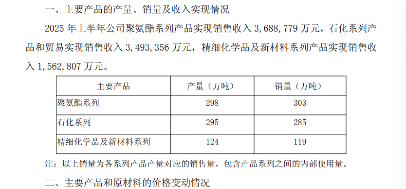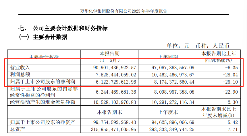 8月11日晚间,万华化学集团股份有限公司(代码:600309;简称:万华化学)披露2025年半年度报告。