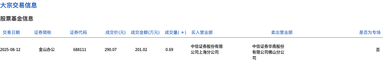 金山办公今日大宗交易平价成交6900股,成交额201.02万元