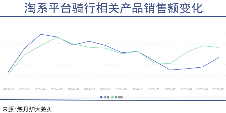 当然这并不意味着行业彻底衰退,核心发烧友的消费韧性仍然还在。炼丹炉的大数据显示,去年一季度,淘系平台自行车、骑行装备及零配件销售额同比增长超过100%,真正的高粘性用户依旧在持续投入。